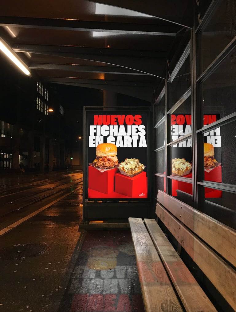 El objetivo principal era captar la atención del transeúnte de manera inmediata y despertar el apetito de un solo vistazo. Para ello, conceptualizamos la llegada de estos nuevos platos como si fueran los "nuevos fichajes" de un equipo estrella.