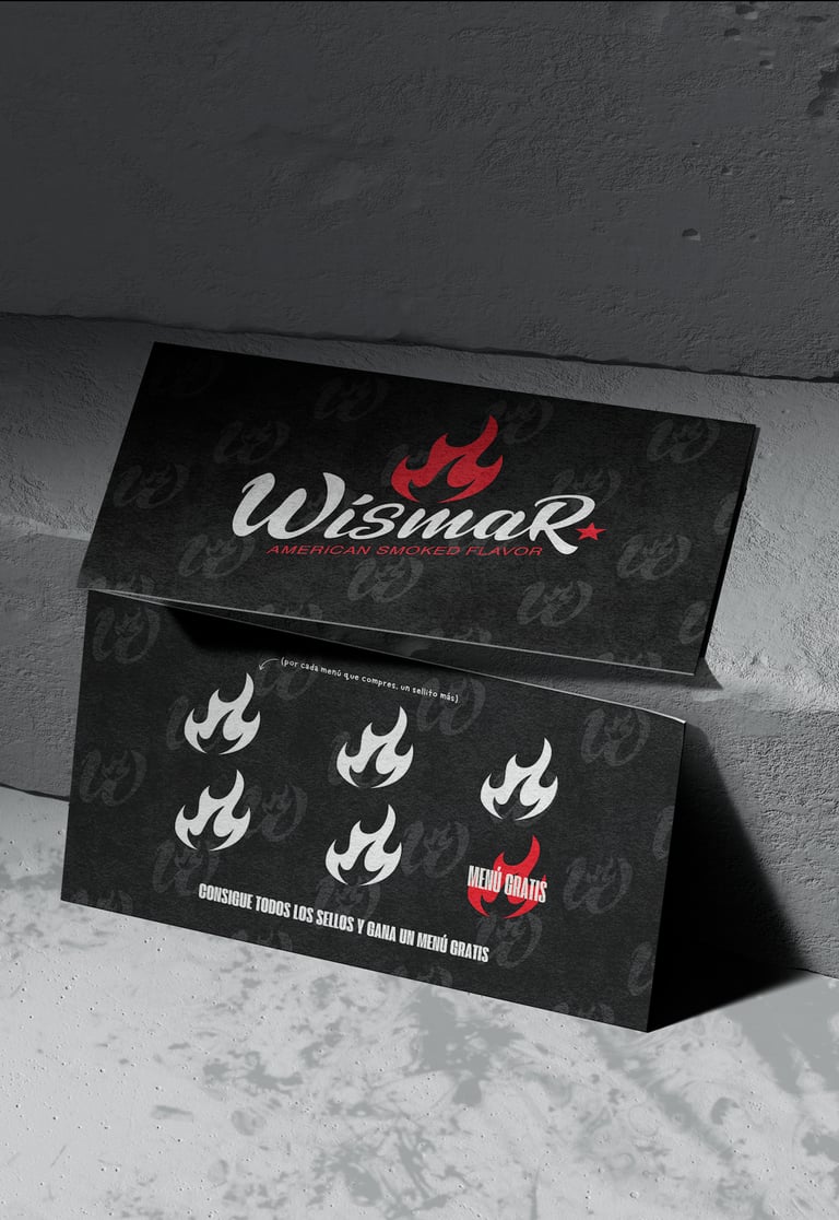 Diseño de la tarjeta de fidelización (loyalty card) para Wismar Food, creada como herramienta de marketing directo para incentivar la recurrencia de los clientes en el local.